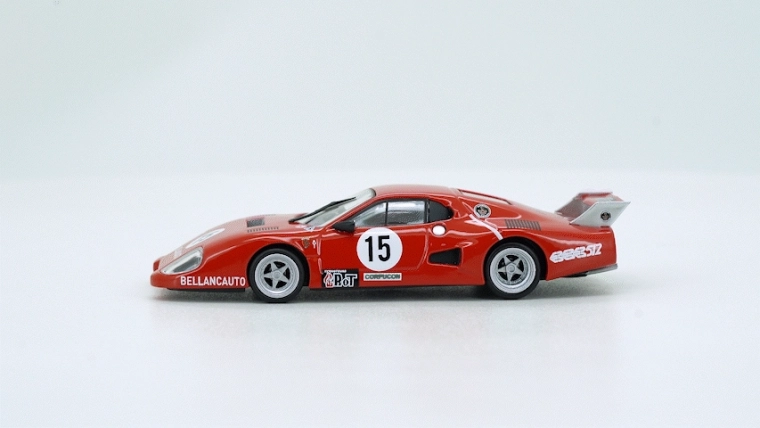Präzise BELLANCAUTO-Bedruckungen und Sponsorenlogos fangen den Look des echten Rennspezials aus dem Jahr 1981 originalgetreu ein.