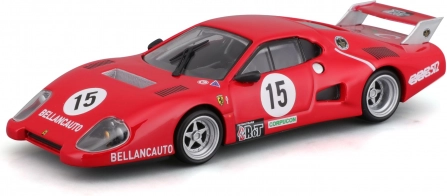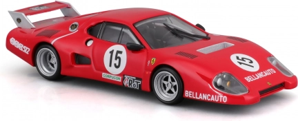 Dieses detailreich gefertigte Modell FERRARI 512 BB (II Serie) 1981 im Maßstab 1:43 stammt aus der Bburago Racing Reihe. Es reproduziert die aggressive Silhouette, den großen Heckflügel und die ikonischen BELLANCAUTO-Schriftzüge originalgetreu. Die Metallkarosserie mit hochwertigem Lack und scharfen Linien sorgt auch aus kurzer Distanz für einen realistischen Auftritt.