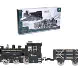 Die Lok wird über einen praktischen ON/OFF-Schalter auf der linken Seite gesteuert und läuft mit 4× AA-Batterien (nicht enthalten). Für den Raucheffekt gibt es einen Wassertank, der sich unter dem silbernen Schornstein befindet; das Befüllen gelingt bequem mit dem beiliegenden Behälter.