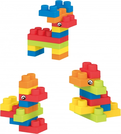 - 48 unterschiedlich geformte Teile für die Entwicklung von Motorik und Kreativität.