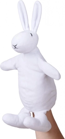 Plüsch-Handpuppe Hase Bob 42 cm aus der Abendserie Bob und Bobek, hergestellt in Tschechien, weich und waschbar.