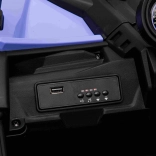 Praktische Details wie öffnende Türen, LED-Lichter vorne und hinten sowie ein übersichtliches Panel mit Ladezustandsanzeige erhöhen den Bedienkomfort. Der Innenraum mit Sitz aus Kunstleder und Sicherheitsgurten bietet Kindern Bequemlichkeit, während das Audiopanel mit MP3/USB/Bluetooth für Lieblingsmusik sorgt.