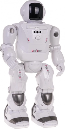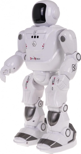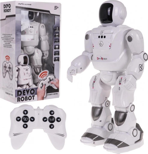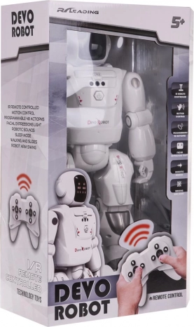 Ferngesteuerter Roboter mit Handsteuerungsfunktion. Das Spielzeug ist für Kinder ab 5 Jahren geeignet. Der Roboter besteht aus hochwertigem Kunststoff und ist für die Kleinsten völlig sicher. Der Roboter wird entweder mit der RC-Fernbedienung aus dem Set oder per Hand im Bewegungserkennungsmodus gesteuert. .. Der Roboter wird mit einer Taste auf der Vorderseite ein- und ausgeschaltet. Zu den Funktionen der Fernbedienung gehören Fahren und Gehen in alle Richtungen, Tanzen sowie die Möglichkeit, die Bewegungen des Roboters in einer persönlichen Sequenz zu programmieren. Der Handsteuerungsmodus wird durch die obere Taste in der Mitte des Spielzeugs aktiviert. Der Bewegungssensor befindet sich unter der Taste. In diesem Modus bewegt sich der Roboter vorwärts–rückwärts–rechts–links. Nach 2 Minuten Inaktivität wechselt der Roboter in den Standby-Modus. Der Roboter wird mit 4 x AA 1,5V Batterien betrieben (nicht im Lieferumfang enthalten), die Fernbedienung mit 2 x AAA 1,5V Batterien (nicht im Lieferumfang enthalten). .. Spezifikationen: . Ferngesteuerter Roboter für Kinder ab 5 Jahren, .- Funktionen Gehen, Fahren, Tanzen über die RC-Fernbedienung, .- Funktion zum Programmieren einer Bewegungssequenz des Roboters, .- Möglichkeit der Steuerung per Handbewegung (vorne–hinten–rechts–links), .- manuell bewegliche Roboterarme, .- digitales Display am Kopf des Roboters, .- Soundeffekte bei jeder Bewegung. . |