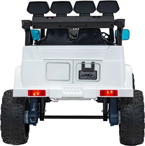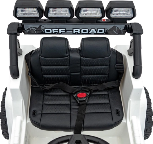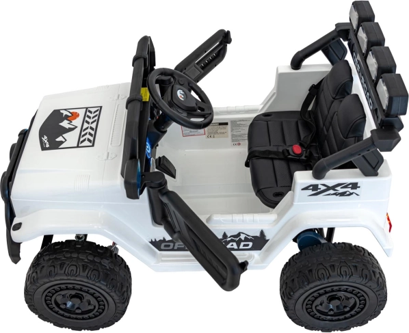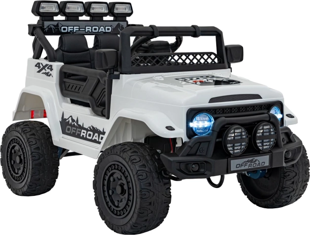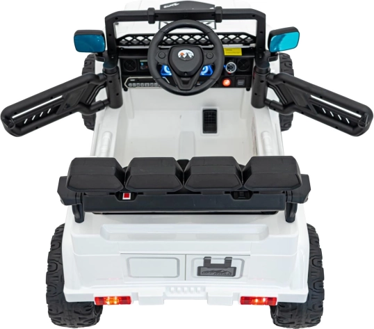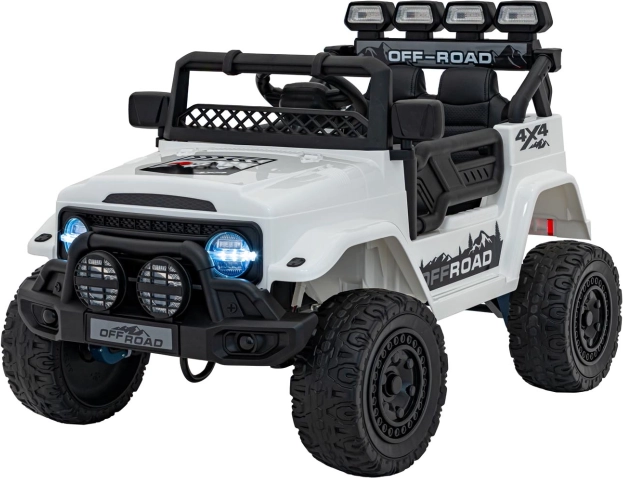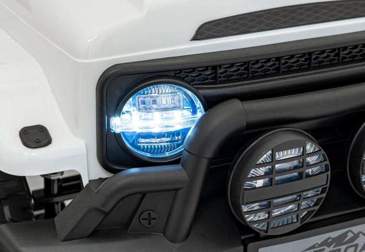Robustes elektrisches Kinderauto mit Antrieb 2×35 W und 12 V 7 Ah Akku für sanftes Anfahren, EVA-Schaumrädern für Komfort und LED‑Beleuchtung vorne, hinten und auf dem Dach. Dank 2,4G‑Fernsteuerung mit Sicherheits‑Stop‑Taste, öffnenden Türen und Sitz aus Kunstleder mit Gurten ist die Fahrt sicher und maximal unterhaltsam.