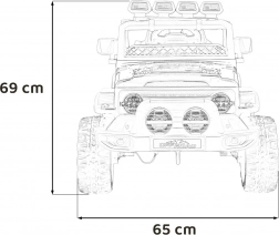 Der Off-Road Climber ist ein robustes Kinderfahrzeug mit Fokus auf Komfort, Sicherheit und Spaß. Zwei leistungsstarke Motoren, hochwertige EVA-Schaumräder und eine hintere Federung gewährleisten eine ruhige Fahrt auch abseits befestigter Wege. Öffnende Türen, realistische LED-Front- und Rücklichter sowie Dachlampen unterstreichen den Offroad-Look.