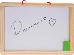 Diese Holztafel fördert natürliche kindliche Neugier und Lernen durch Spiel. Eine Seite ist schwarz für Kreide zum Zeichnen und Schreiben mit Kreide, die andere weiß und trocken abwischbar für das Schreiben mit Marker. Dank der Magneten mit Buchstaben und Zahlen üben Kinder spielerisch Alphabet, Rechnen und Formen.