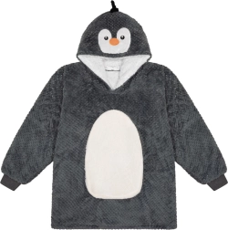 Die tragbare Pinguin-Decke hat eine geräumige Kapuze und eine große Fronttasche, die Ihre Hände warm hält.