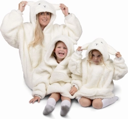 Diese Hoodie-Decke ist eine großartige Kombination aus Praktikabilität und Stil. Große Kapuze und geräumige Vordertasche erleichtern die Verwendung sowohl im Haus als auch draußen. Das Material ist nicht nur warm, sondern auch extrem weich im Griff, was Komfort in jeder Situation gewährleistet.