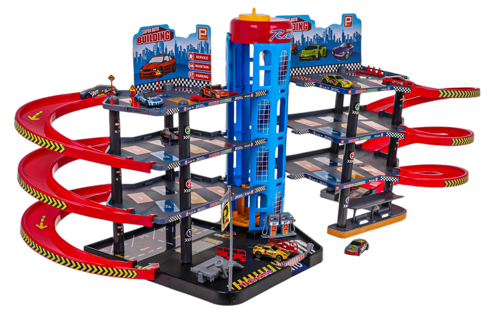 Großes, mehrstöckiges Parkhaus inklusive Fahrzeuge, geeignet für Kinder ab 3 Jahren. Die aufeinanderfolgenden Ebenen des Parkhauses sind mit Aufzug oder Rutsche erreichbar. Das Spielzeug benötigt keine Batterien, der Aufzug wird per Kurbel bedient. .. Funktionen des Sets: . - geeignet für Kinder ab 3 Jahren, .- hergestellt aus hochwertigsten Materialien, .- leuchtende Farben ziehen Kinderaugen an, .- im Lieferumfang sind 8 Fahrzeuge enthalten, - im Erdgeschoss befinden sich eine Tankstelle und eine Werkstatt mit Aufzug, .- fahrbarer Aufzug, manuell bedient, .- Rutschen für Autos, .- Verkehrszeichen, einschließlich Schranken. |