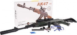 Die große militärische SKS-Gelblaster ist für Kinder ab 14 Jahren geeignet. Sie sollte mit speziellen Hydrogelfkügelchen verwendet werden, die beim Auftreffen auf das Ziel spektakulär zerplatzen und für Kinder sicher sind. Das Set enthält einen Beutel mit nicht vorbereiteten Kügelchen. Die Kügelchen werden vorbereitet, indem man sie mit Wasser übergießt und etwa 4–6 Stunden quellen lässt. Anschließend das überschüssige Wasser abgießen und die Munition ist einsatzbereit. In diesem Modell sollten Kügelchen mit einem Durchmesser von etwa 7–8 mm verwendet werden. . Die Blaster sind mit manuellem und automatischem Schussmodus ausgestattet. Das Zielfernrohr verfügt über eine Vergrößerung, und die Zielentfernung kann mit einem Einstellrad angepasst werden. Im Lieferumfang sind Zubehörteile wie Lauf, Schalldämpfer, Magazin, Feldflasche und Schutzbrille enthalten. Das Spielzeug wird von einem 7,4-V-Akku betrieben, der im Set enthalten ist. .. Spezifikationen: . - SKS-Spielzeugblaster mit Zubehör, .- Möglichkeit zur Montage beweglicher Teile wie Lauf, Schalldämpfer, Magazin, Flasche, .- Möglichkeit zur Montage eines Zielfernrohrs mit Lupe und Vergrößerungseinstellung, .- manueller oder automatischer Schussmodus, .- wird mit einem Beutel Hydrogelfkügelchen geliefert, .- Hydrogelfkügelchen zerplatzen beim Aufprall und sind sicher in der Anwendung, .- detailgetreue Nachbildung einer echten Waffe, .- geeignet für Kinder ab 14 Jahren, .- Montageanleitung im Lieferumfang enthalten. . |