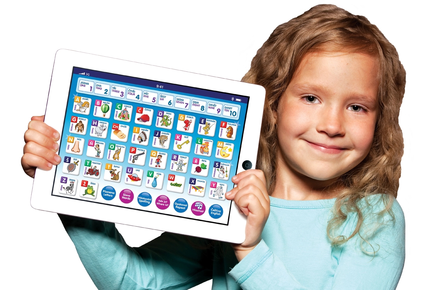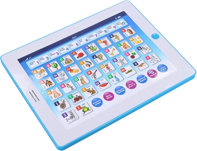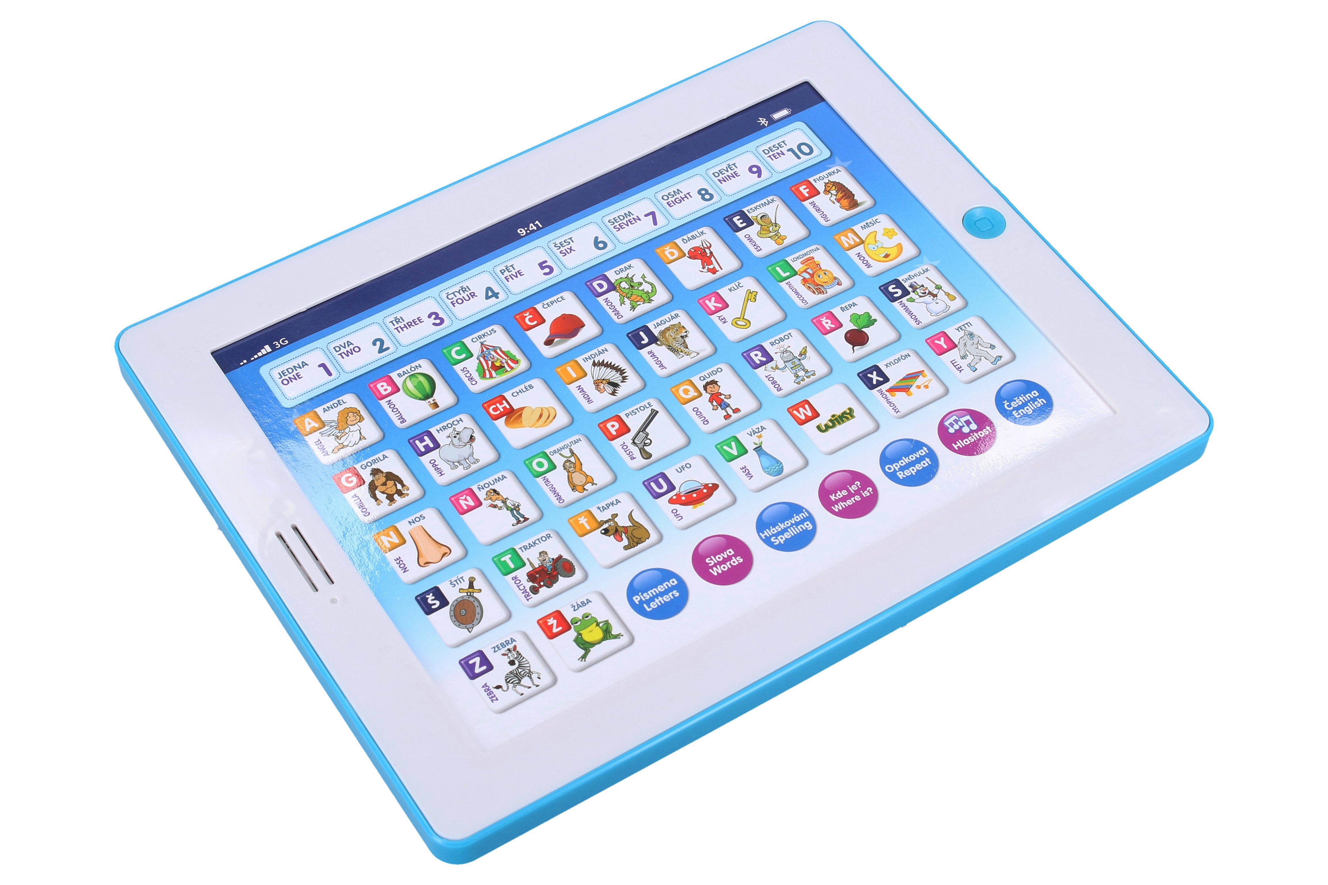 Unterhaltsames und lehrreiches Kinder-Tablet für kleine Entdecker ab 3 Jahren. Es lehrt auf Tschechisch und Englisch, hilft beim Zählen von 1 bis 10, bei der Alphabet-Lernung und beim Buchstabieren. Enthält unterhaltsame Spiele mit Buchstaben, Wörtern und Zahlen und spielt Melodien ab.