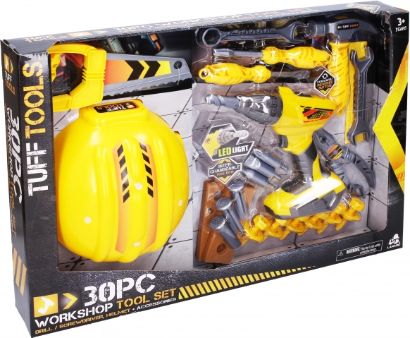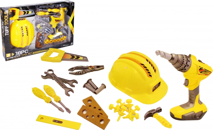 Entdecken Sie das Kinder-Werkzeugset mit Helm von der Marke Tuff Tools - das ideale Paket für kleine Handwerker, die die Welt des Werkzeugs und der Reparaturen erkunden möchten!