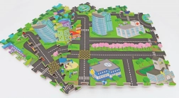 Diese Schaumstoffmatte – Puzzle mit Stadtmotiv verwandelt das Zimmer in eine spielerische und sichere Umgebung. Dank des weichen EVA-Schaums dämpft sie Stöße, isoliert die Kälte vom Boden und bietet Kindern einen bequemen Platz zum Krabbeln, Sitzen und für die ersten Schritte.