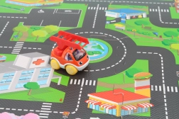 - Fördert die Fantasie dank des spielerischen Stadtmotivs.