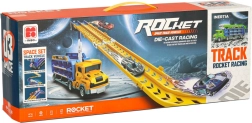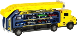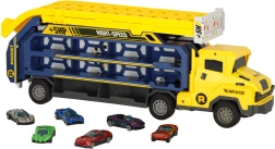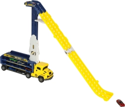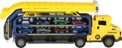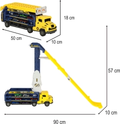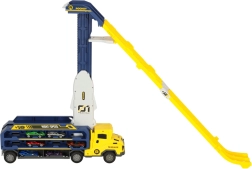 Lastwagen – Anhänger mit Rennstrecke und Rutsche für Spielzeugautos, gelb