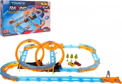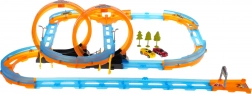 Die Strecke enthält scharfe Kurven und zwei Schleifen, die eine spannende Fahrt bieten. Sicherheitsmerkmale sorgen dafür, dass die Autos bei hoher Geschwindigkeit nicht von der Strecke abkommen.
