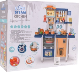 Die Küche enthält insgesamt 65 Teile wie Töpfe, Pfannen, Lebensmittelattrappen und vieles mehr. Dieses Set bietet endlose Möglichkeiten für kreatives Spielen.