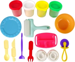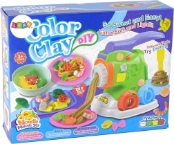 Die Teigmaschine erinnert in ihrer Struktur an eine echte Nudelmaschine, sodass Ihr kleiner Koch in der Küche ein wenig experimentieren kann, ohne echte Lebensmittel zu verschwenden. Das Hauptelement der Maschine ist eine Presse, mit der man eine Teigkugel auspressen und ihr so eine bestimmte Form geben kann. Austauschbare Spitzen ermöglichen die Herstellung verschiedener Nudelsorten. Es gibt die Form klassischer Spaghetti und von Nudeln in Schweinchenform.