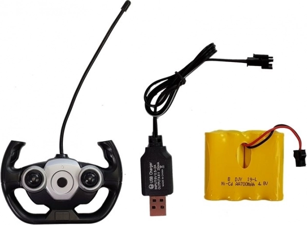 Die Steuerung per Fernbedienung ermöglicht vorwärts/rückwärts und rechts/links, und die an ein Lenkrad erinnernde Form liegt perfekt in kleinen Kinderhänden. Ein weiteres Highlight ist die Wasser-Spritzfunktion: Einfach mit dem Trichter Wasser einfüllen und der Spielspaß kann beginnen.
