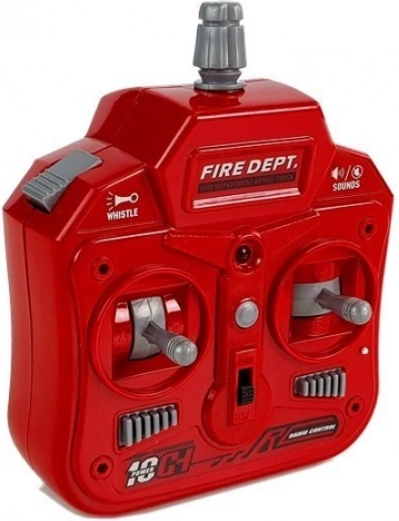.- Ein großer Vorteil ist die frei aus- und einfahrbare Leiter. Sie wird über separate Tasten an der Rückseite der Fernbedienung gesteuert und kann sich zudem um die eigene Achse drehen. Ihr kleiner Feuerwehrmann kann so von beiden Seiten löschen.