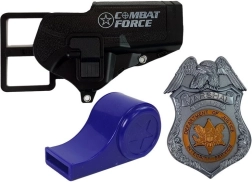 Enthalten sind Holster, Abzeichen und Pfeife – alles, was ein kleiner Polizist zum Ordnungshüten und für actionreiche Szenen braucht.
