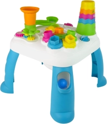 Der Tisch ist stabil und robust, hergestellt aus sicheren, ungiftigen Materialien gemäß Spielzeugnormen. Ideal als erstes interaktives Aktivitätszentrum für Kinder ab 18 Monaten.