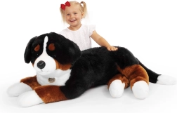 Der niedliche und kuschelige Berner Sennenhund mit einer Länge von 89 cm besteht aus superweichem Plüsch mit realistischem trikolorem Muster. Dank der eco‑friendly Füllung aus recycelten PET‑Flaschen ist er auch für die Kleinsten sicher, dabei außergewöhnlich weich und ideal zum Kuscheln, Ausruhen und als Dekoration im Kinderzimmer.
