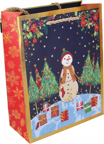 Geschenktasche mit Weihnachtsmotiv mit den Maßen 23 x 18 x 8 cm ist die ideale Lösung zum Verpacken kleinerer Geschenke in der Feiertagszeit.