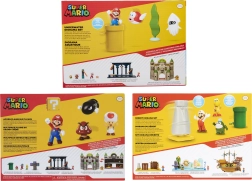 Kaufen Sie ein Super Mario Figuren Set mit einer Größe von 6 cm und erwecken Sie Ihr Lieblingsspiel mit drei verschiedenen Dioramen – Unterwasser, Eichel-Ebenen und Wüste zum Leben.