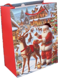 Diese Weihnachts-Geschenktasche erleichtert das Verpacken und verleiht Ihren Geschenken ein repräsentatives Aussehen. Dank der praktischen Maße fasst sie Bücher, Kosmetiksets, Textilien sowie kleinere Schachteln. Hochwertiges Material und stabile Tragegriffe sorgen für einen bequemen und sicheren Transport.