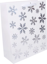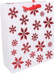 Stilvolle weihnachtliche Geschenktasche in Größe L mit den Maßen 31 × 42 × 12 cm. Ideal zum Verpacken größerer Geschenke, mit stabilen Griffen und hochwertigem Papier für eine einfache und elegante Übergabe. Verfügbar in 4 Varianten weihnachtlicher Motive.