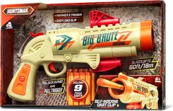 Die leistungsstarke und spaßige Schaumpistole Huntsman Big Brute (33 cm) mit Reichweite bis zu 18 m liefert Action ohne Kompromisse. Ein Magazin für 6 Schuss und 9 Schaumgeschosse im Lieferumfang sorgen für langanhaltenden Spielspaß; das Spannen des Hahns schaltet das Magazin automatisch zum nächsten Schuss weiter und der Abzug feuert sofort.