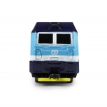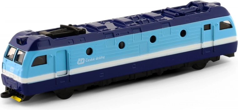 Die originale Metalllokomotive der České dráhy mit einer Länge von 17 cm begeistert jeden Eisenbahnfans. Sie bietet öffnende Türen, die durch Verschieben des Pantografen gesteuert werden, die Möglichkeit zum Kuppeln mehrerer Stücke, Rückzugantrieb und Kompatibilität mit Gleisen mit einer Spurweite von ca. 1,7 cm.