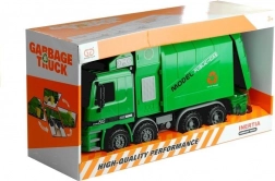 Dieses große, grüne Müllauto begeistert alle Kinder, die Arbeitsfahrzeuge und realistisches Spielen lieben. Dank der öffnenden Heckklappe und dem cleveren Kippmechanismus sammeln Sie Abfall ein und entleeren ihn mühelos in die Mulde. Die offene Kabine bietet Platz für eine Fahrerfigur und einen Beifahrer, das Lenkrad lässt sich drehen und die beweglichen Rückspiegel erhöhen die Authentizität des Spiels. Profilierte Räder meistern verschiedene Untergründe, und der Schwungradantrieb sorgt nach einem leichten Schubs für Fahrt.