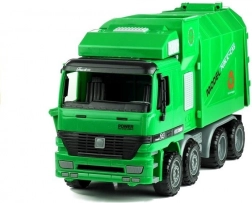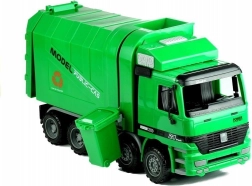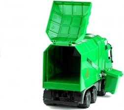 Großes grünes Kinder-Müllauto mit öffnender Mulde und ansteckbarem Mülleimer