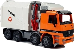 Der große Müllwagen in Orange‑Weiß bringt realistisches Spiel rund um das Sortieren von Abfällen. Robuste Verarbeitung, öffnbarer Container und Friktionsantrieb sorgen für eine gleichmäßige Fahrt und viel Action beim Beladen und Entladen. Die offene Kabine bietet Platz für Fahrer- und Beifahrer-Figuren (nicht im Lieferumfang enthalten).