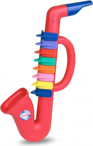 Kinder rotes Saxophon aus hochwertigem Kunststoff mit 8 Klappen bietet großartigen Spaß für kleine Musiker. Hergestellt in Italien für maximale Sicherheit.