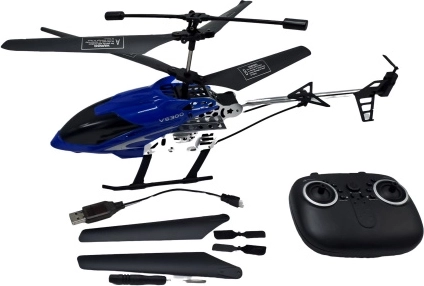 - Helikopter, Sender, USB-Ladegerät/Kabel, Ersatzrotorblätter
