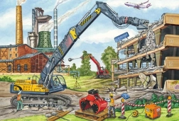Unterhaltsames Set aus drei Puzzles mit Motiven einer belebten Baustelle von SCHMIDT. Jedes Puzzle hat 48 Teile und misst nach dem Zusammensetzen ca. 26,3 × 17,8 cm – ideal für Kinder, die Baumaschinen und hochwertige Puzzles lieben.