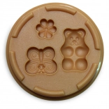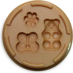 Runde Förmchen mit Motiven wie Blüte, Blatt, Rose, Schmetterling und Bär ermöglichen das einfache Gestalten schöner Verzierungen und bunter Kombinationen.