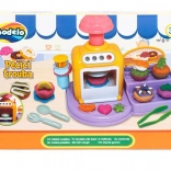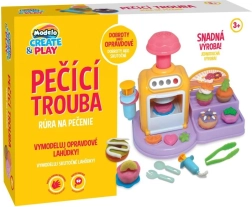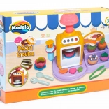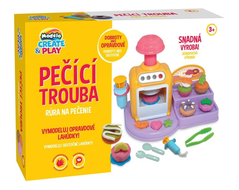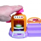 Öffnende Ofentür, Knöpfe und Hebel machen das Backen zu einem spaßigen Ritual. Lege das Törtchen hinein, drücke und beobachte, wie daraus eine fertige Knet-Leckerei wird.