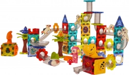 Farbiges Magnetbaustein-Set mit ZOO-Motiv für Kinder ab 3 Jahren. Das Set besteht aus 153 Teilen und ermöglicht den Bau einer Murmelbahn in beliebiger Anordnung. Die Bausteine bestehen aus hochwertigstem Kunststoff, sind glatt und sorgfältig verarbeitet. Sie verbinden sich mittels integrierter Magnete. Die Magnete halten sehr gut und sorgen für Stabilität der Konstruktion. Im Set enthalten ist eine bebilderte Anleitung zum Aufbau von Beispielbahnen.