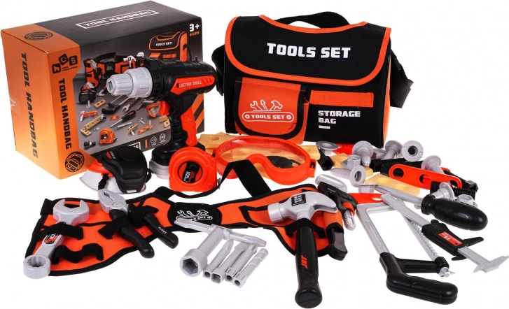 - Werkzeugtasche ca. 23 cm x 17 cm x 10,5 cm, .- Werkzeuggürtel ca. 35 cm x 14,5 cm, maximaler Umfang ca. 88 cm, .- interaktiver Bohrer ca. 15 cm x 15 cm x 5 cm, .- austauschbare Schraubendreher und Bits, Länge ca. 6,5 cm bis 8 cm, .- Schraubnuss ca. 8 cm x 3 cm, .- Winkelmesser ca. 17 cm x 6 cm, .- Schraubenschlüssel ca. 18 cm x 5 cm, .- Ringschlüssel ca. 14 cm x 4 cm, .- Zange ca. 15 cm x 4,5 cm, .- Hammer ca. 16,5 cm x 8 cm, .- 3 kleinere Teile zum Verschrauben ca. 6 cm x 2,5 cm, .- 3 größere Teile zum Verschrauben ca. 9 cm x 2,5 cm, .- 6 Teile in verschiedenen Längen zum Einschrauben von Schrauben, Länge von 6,5 cm bis 16 cm, .- Schraube ca. 5,5 cm x 1,5 cm, .- Dichtung mit einem Durchmesser von ca. 3 cm, .- Messbecher ca. 5,5 cm x 6 cm x 2,5 cm, .- Maske ca. 8 cm x 8 cm x 4 cm, .- Schutzbrille ca. 14,5 cm x 6 cm x 3 cm, .- Dübel ca. 5 cm x 3 cm, .- Dübel ca. 20 cm x 6,5 cm x 2 cm, .- Verpackung ca. 24 cm x 17,5 cm x 12 cm. . |