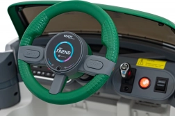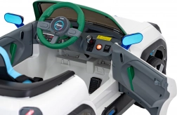 Dank der weichen EVA-Räder (Ø 22 cm, Breite 8 cm) ist die Fahrt leise und komfortabel, auch auf rauerem Untergrund. Das Auto verfügt über öffnende Türen, beleuchteten Start, vordere und hintere LED-Lichter sowie einen beleuchteten Kühlergrill. Der bequeme Sitz aus Kunstleder mit MINI-Prägung und Sicherheitsgurt bietet Sicherheit und Stil. Das Audio-Panel mit MP3, Bluetooth, USB und AUX erfreut kleine Fahrer mit ihrer Lieblingsmusik.