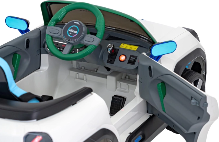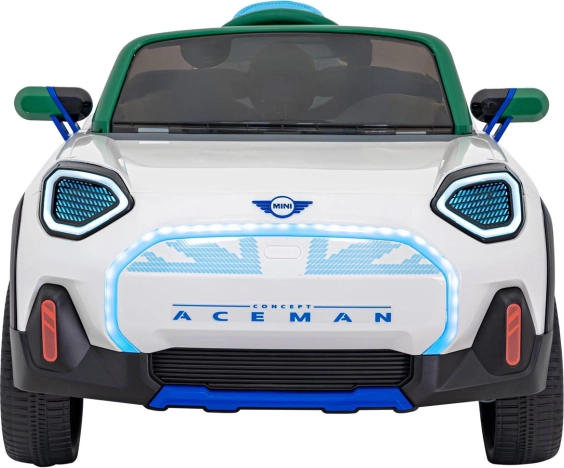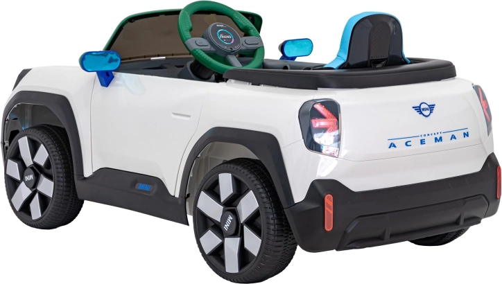 Der MINI Concept Aceman ist ein Premium-Kinderauto mit Fokus auf Sicherheit, Spaß und Design. Die leistungsstarke Antriebskonfiguration (2x20 W vorne + 2x35 W hinten) in Kombination mit einem 12 V 9 Ah Akku sorgt für sanftes Anfahren, zwei Geschwindigkeiten sowie Vorwärts-/Rückwärtsfahrt. Die elterliche Aufsicht gelingt bequem über die 2,4-GHz-Fernbedienung mit drei Geschwindigkeiten und Sicherheitstaste STOP.