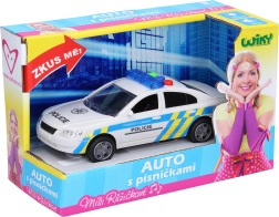 Dieses Polizeiauto ist das perfekte Spielzeug für Kinder ab 3 Jahren. Dank des Schwungradantriebs macht das Spielen mit dem Auto Spaß und ist realistisch. Licht- und Soundeffekte, die durch Tasten auf dem Autodach aktiviert werden, bieten fröhlichen Spaß und regen die kindliche Fantasie an. Enthält drei beliebte Lieder von Míša Růžičková: Polizeiauto, Krankenwagen und Müllabfuhr.