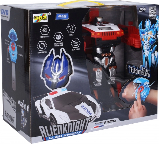 Ferngesteuerter Autoroboter bietet eine innovative Steuerung durch einen stilvollen Uhrencontroller, der eine komfortable Handhabung gewährleistet. Machen Sie sich Freude mit einem hochwertigen Roboter mit Licht- und Soundeffekten für maximalen Spaß.