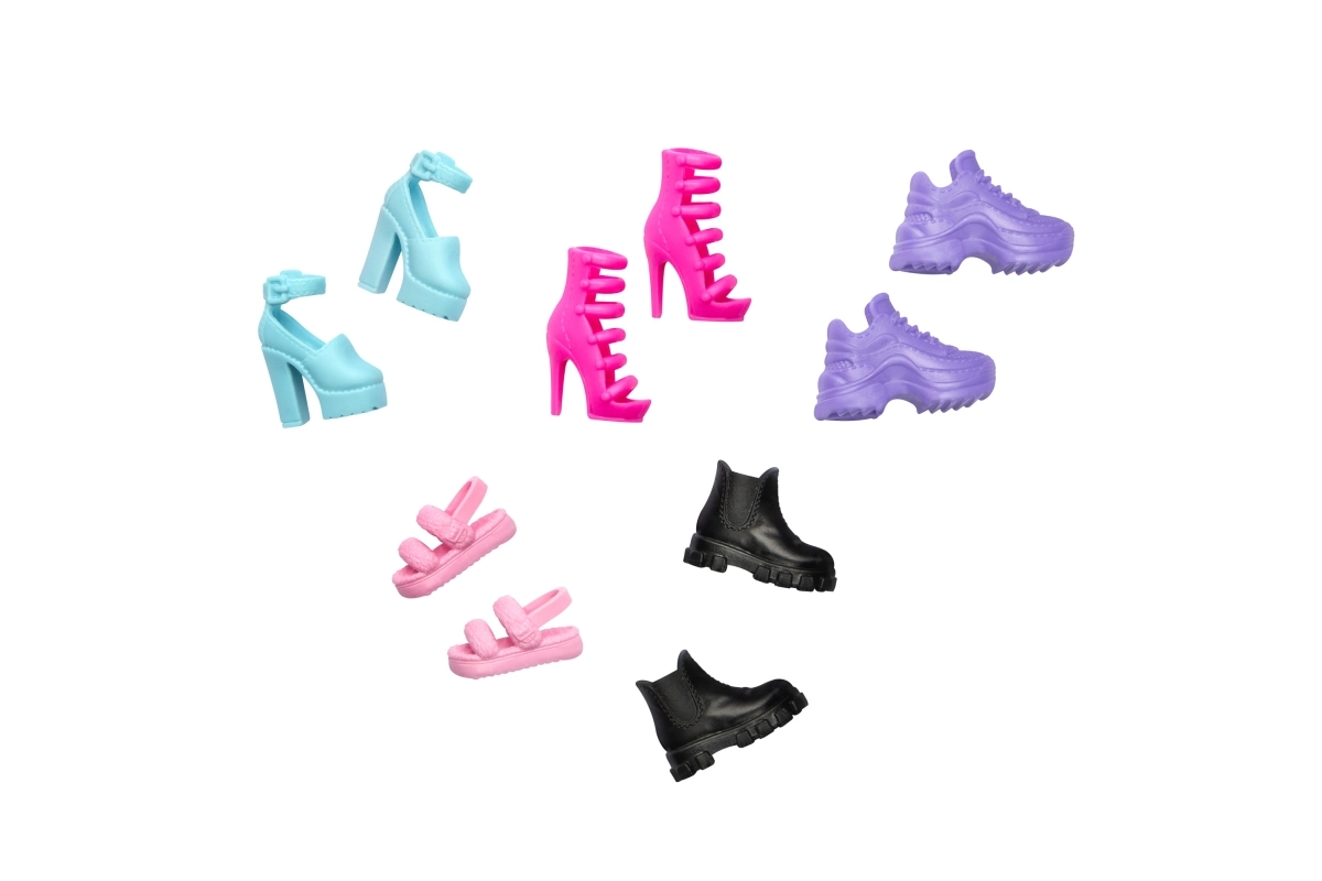 Gönnen Sie Ihrer BARBIE-Puppe endlose Styling-Möglichkeiten mit diesem bunten Schuhset. Die Packung bietet 5 Paar Schuhe in verschiedenen Stilen – High Heels, Stiefel und Sneakers – für modischen Spaß und vielseitige Outfit-Kombinationen. Kompatibel mit den meisten Barbie-Puppenkörpern. Alter 3+.