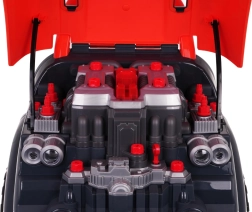 Unter der Haube verbirgt sich ein großer Motor, der sich mithilfe von Schrauben und Werkzeugen auseinander- und wieder zusammenbauen lässt. Kinder trainieren ihre Feinmotorik und verstehen, wie ein Auto funktioniert.