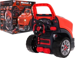 Dieser interaktive Lastwagen verwandelt das Kinderzimmer in eine echte Werkstatt. Unter der Motorhaube verbirgt sich ein großer, zerlegbarer Motor, der sich mithilfe von Schrauben und Werkzeugen leicht zusammen- und auseinanderbauen lässt; es lassen sich sogar Zündkerzen und Räder wechseln. Auf dem Armaturenbrett befinden sich ein Startknopf mit Startgeräuschen, ein Lenkrad mit Hupe und die Warnblinkanlage. Unter dem Lenkrad gibt es ein praktisches Staufach für Werkzeuge.